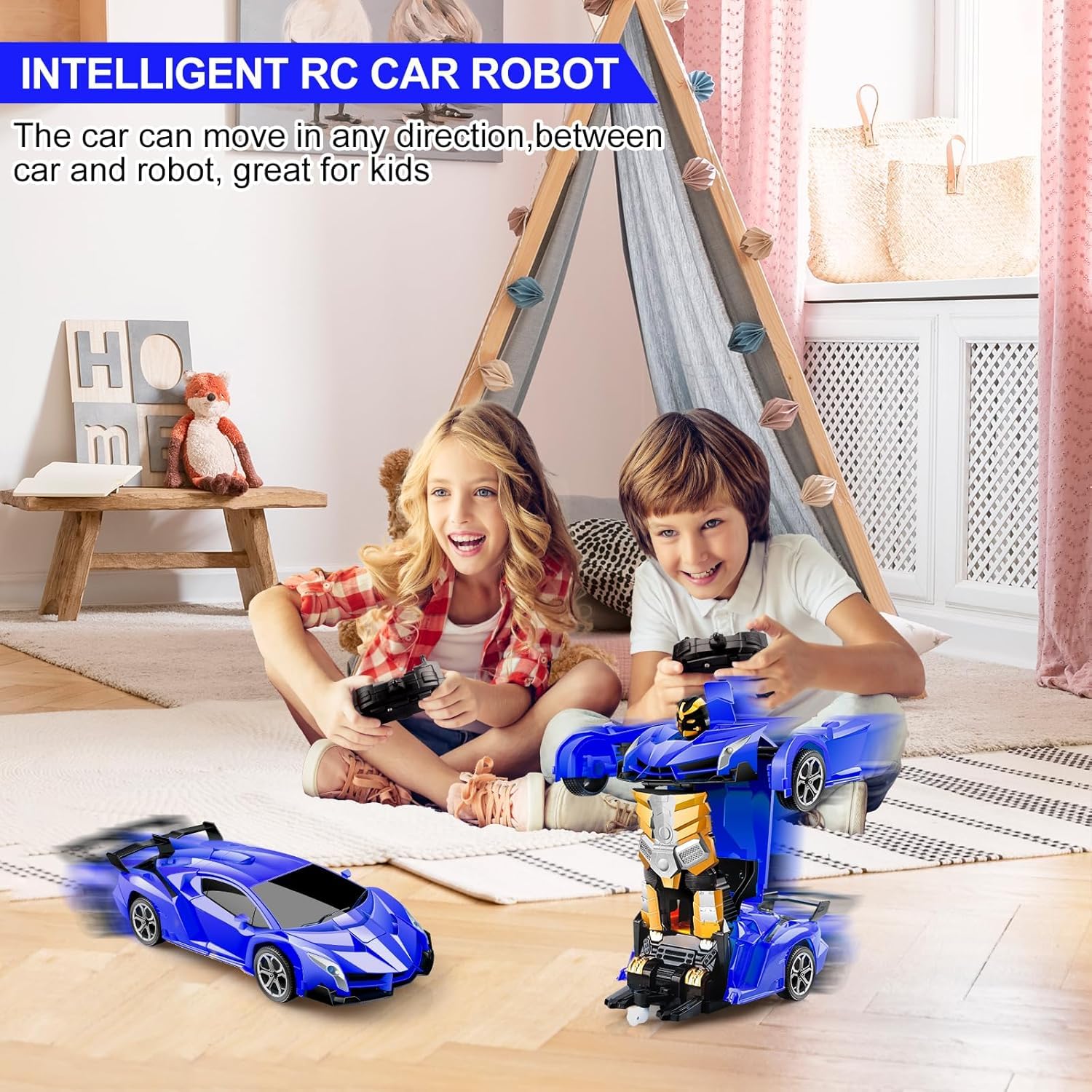 Bring home an action-packed toy that combines speed, robotics, and fun. The TurboMorph RC Transformer Car easily transforms from a racing car into a robot with one click.