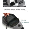 Designed for the modern commuter, this waterproof sling bag combines practical innovation with everyday functionality. The built-in USB charging port enables seamless device charging during travel, while the integrated headphone jack provides direct audio access without tangled cords. Two strategically placed pockets organize essentials—smartphone, wallet, cards, and accessories—with ample capacity for daily needs. The ergonomic shoulder strap adapts to your preference: wear it traditionally over one shoulder for casual comfort, or position it diagonally across your chest for enhanced security and hands-free convenience. Weather-resistant construction ensures durability across business environments, outdoor activities, cycling, and daily routines. Lightweight yet robust, this bag delivers professional-grade organization for those who demand both style and substance.